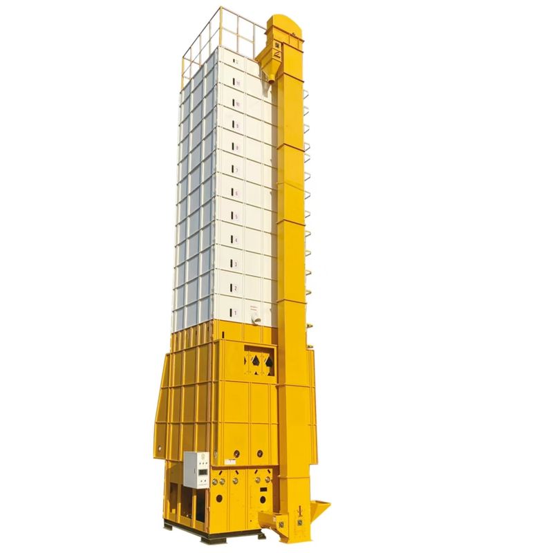 Após uma única leva de grãos entrar na máquina de secagem, use as peças elétricas em conjunto para fazer os grãos circularem ordenadamente no secador, novamente pelo fogão de ar quente queimando combustível para produzir ar quente, sob a ação de um único ventilador elétrico, deixe o ar passar pela camada de secagem de fluxo misto do duto de ar, penetrar e aquecer os grãos, remover a umidade dos grãos através do fluxo de ar, o gás de exaustão com umidade é descarregado da máquina através da sucção do ventilador através do tubo, e o grão seco é detectado pelo medidor de umidade online automático para atingir o ponto de umidade predefinido, então a máquina é parada e a secagem é concluída.