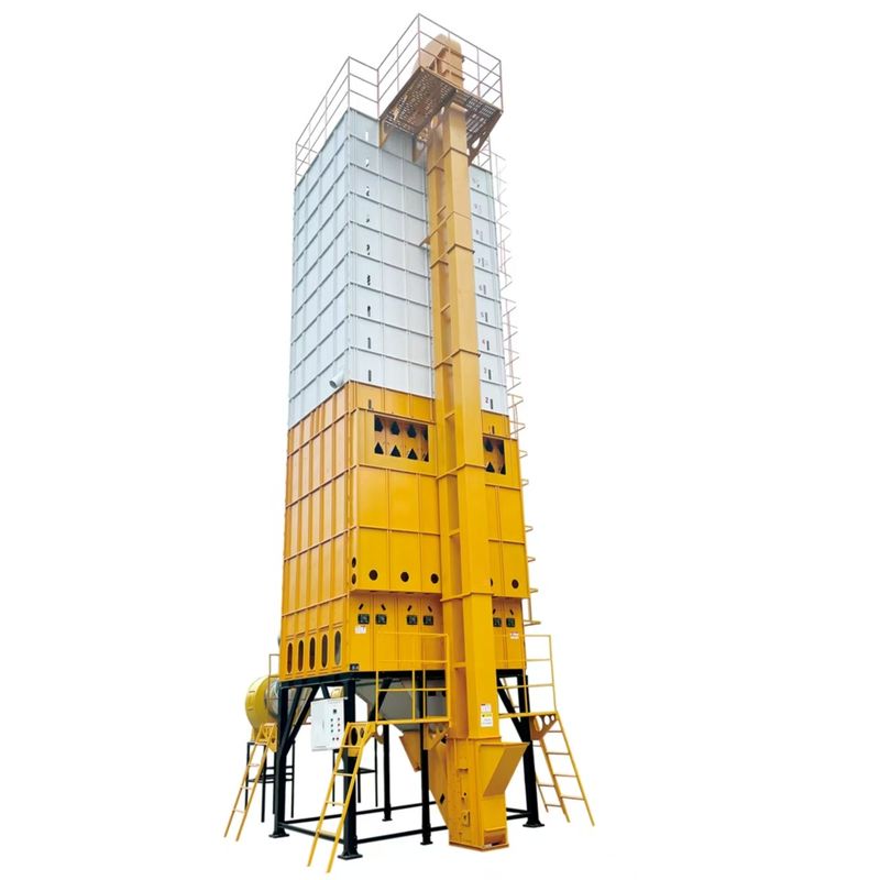 Depois de um único lote de grãos na máquina de secar, usar as peças elétricas juntas correndo faz grãos uma circulação ordenada na secadora,novamente por fogão a ar quente queima combustível para produzir ar quente, sob a ação de um único ventilador elétrico, deixar o ar por camada de secagem de fluxo misto do ducto de ar, penetração e aquecimento grãos de trabalho, tirar a umidade do grão através do fluxo de ar,O gás de escape com umidade é descarregado da máquina através da sucção do ventilador através do tubo, e o grão seco é detectado pelo medidor de umidade automático online para atingir o ponto de umidade pré-definido, em seguida, a máquina é parada e a secagem é concluída.